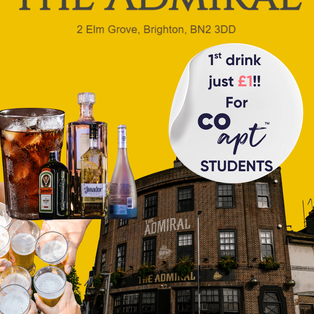 The Admiral on Elm Grove is offering Coapt tenants the incredible deal of any house spirit and mixer for just £1 for their first drink. Just show the bartender your student newsletter email and claim your drink.